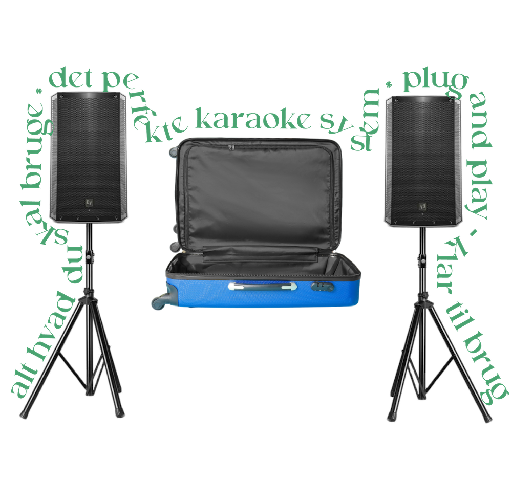 Komplet karaoke sæt med vores handy plug and play system og 2 højtalere